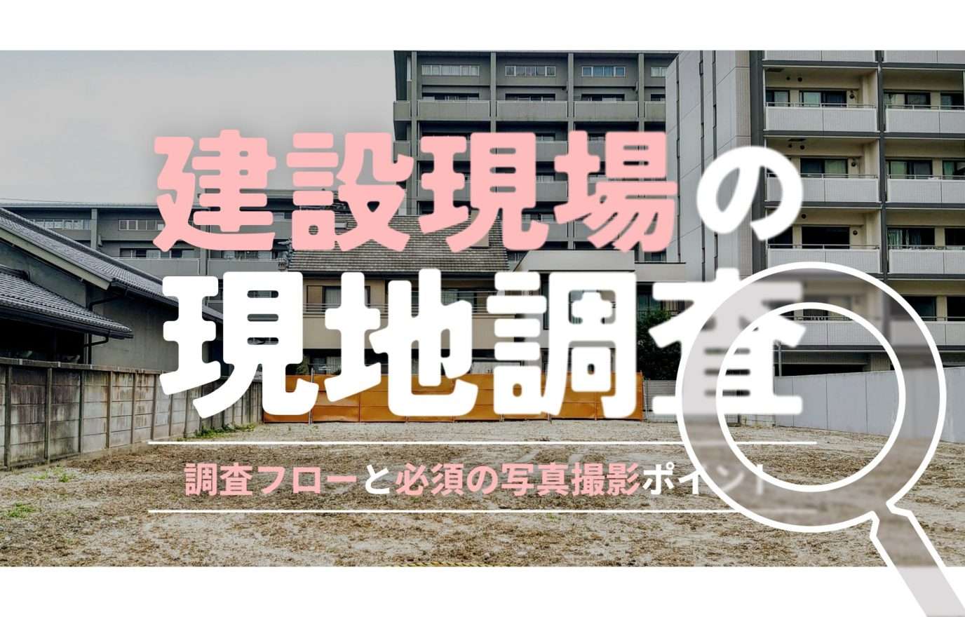 現地調査 工事写真アプリ 工事写真台帳 2026/01/26 建設現場の現地調査とは?調査フローと必須の写真撮影ポイントをわかりやすく解説 この記事をシェアする 【個人情報の取り扱いについて】 ・この入力フォームでご提供いただく個人情報は、弊社が提供するサービスや商品に関する情報を電子メール等でご提供および案内のために利用します。 ・当個人情報を第三者に提供することはありません。 ・当個人情報の取扱いを委託することがあります。委託にあたっては、委託先における個人情報の安全管理が図られるよう、委託先に対する必要かつ適切な監督を行います。 ・当個人情報の利用目的の通知、開示、内容の訂正・追加または削除、利用の停止・消去および第三者への提供の停止(「開示等」といいます。)を受け付けております。開示等の請求等は、以下の「個人情報苦情及び相談窓口」で受け付けます。 ・任意項目の情報のご提供がない場合、最適なご回答ができない場合があります。 ・当ホームページではクッキー等を用いておりますが、これによる個人情報の取得、利用は行っておりません。 ・入力していただいた個人情報はSSLにより暗号化されます。 <個人情報苦情及び相談窓口> 株式会社ミライ工事 個人情報保護管理者: 神山 苦情及び相談窓口責任者 神山 〒153-0043 東京都目黒区東山3-16-19 TEL :03-3714-3355 メール:help@miraikoji.com (受付時間 月曜日~金曜日 祝祭日を除く 9時~17時) 上記を確認の上、ご同意いただける方は送信ボタンを押してください。 × 建設工事の現地調査は、施工計画や見積の精度を左右する重要な工程です。一方で、「現地調査では何を確認すればいいのか」「写真はどこまで撮れば十分なのか」と迷ったまま、先輩に同行しているだけになってしまう新人施工管理や見積担当者も少なくありません。 確認不足や記録漏れは、工事中の手戻りや追加費用、関係者間の認識違いといったトラブルにつながります。だからこそ、現地調査は“何となく見る作業”ではなく、目的を理解したうえで、必要な情報を確実に押さえることが重要です。 本記事では、建設現場における現地調査について、調査の流れや確認項目、必須の写真撮影ポイントを中心に、実務目線でわかりやすく解説します。 目次1 建設現場の現地調査とは?目的と役割について1.1 現地調査の定義と業務上の位置づけ1.2 現地調査が施工・見積の精度を左右する理由2 現地調査で確認すべき3つの視点2.1 敷地・周辺環境の視点2.2 施工条件・既存設備の視点2.3 安全・法規制の視点3 事前準備と持ち物3.1 現地調査の基本的な持ち物3.2 事前準備で差がつくポイント4 現地調査で大事な写真撮影のポイント4.1 全景・位置関係が分かる写真4.2 施工に影響する要素の写真4.3 搬入経路・作業動線の写真5 現地調査の結果を施工計画・見積に活かす5.1 施工計画・見積への具体的な反映例5.2 写真・情報を整理・共有する重要性 建設現場の現地調査とは?目的と役割について 現地調査の定義と業務上の位置づけ 建設現場における現地調査とは、工事着手前に実際の現場へ赴き、敷地条件や周辺環境、施工上の制約を確認・記録する業務です。図面や仕様書に基づいて工事を計画する前段階として、現場条件を正確に把握するために行われます。 現地調査は、施工管理だけでなく、見積作成や工程計画、仮設計画にも直結する情報を扱います。営業段階で得た情報を補完したり、設計内容と現地の状況に差異がないかを確認したりする役割も担います。 単なる「現場を見る作業」ではなく、工事全体の前提条件を整理し、関係者間の共通認識をつくるための業務である点が重要です。 (出典)建設業法 第18条・第19条 現地調査が施工・見積の精度を左右する理由 現地調査が欠かせない理由は、図面や資料だけでは判断できない要素が多く存在するためです。敷地の高低差、隣地との距離、資材や重機の搬入経路、作業スペースの余裕、安全面のリスクなどは、実際に現地を確認しなければ正確に把握できません。 こうした情報を見落としたまま施工計画や見積を作成すると、工事開始後に条件変更が発生し、手戻りや追加費用につながります。特に初期段階での判断ミスは、後工程になるほど修正が難しくなります。 現地調査で確認した内容を写真やメモとして正しく残し、関係者と共有することで、施工計画や見積の精度は大きく向上します。現地調査は、工事を円滑に進めるための土台をつくる工程といえるでしょう。 (出典)建設機械施工安全マニュアル 現地調査で確認すべき3つの視点 現地調査では、あらかじめ「どの視点で見るか」を決めておくことが重要です。確認項目を整理せずに調査を行うと、見落としや確認漏れが発生しやすくなります。ここでは、現地調査で押さえておきたい代表的な確認項目を、大きく3つの視点に分けて解説します。 敷地・周辺環境の視点 現地調査では、まず敷地の形状や高低差、接道状況といった基本条件を確認します。