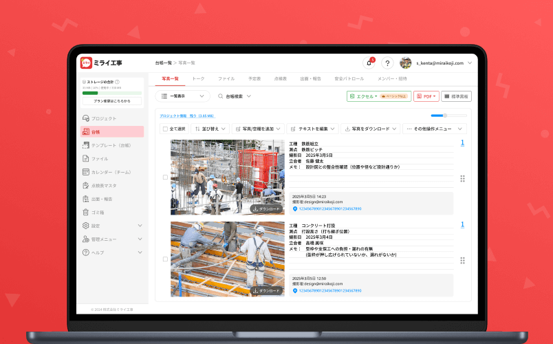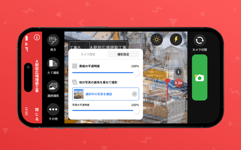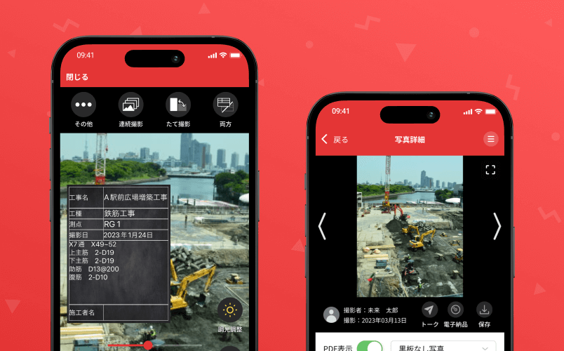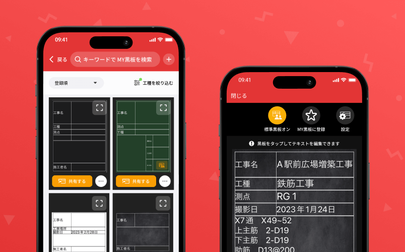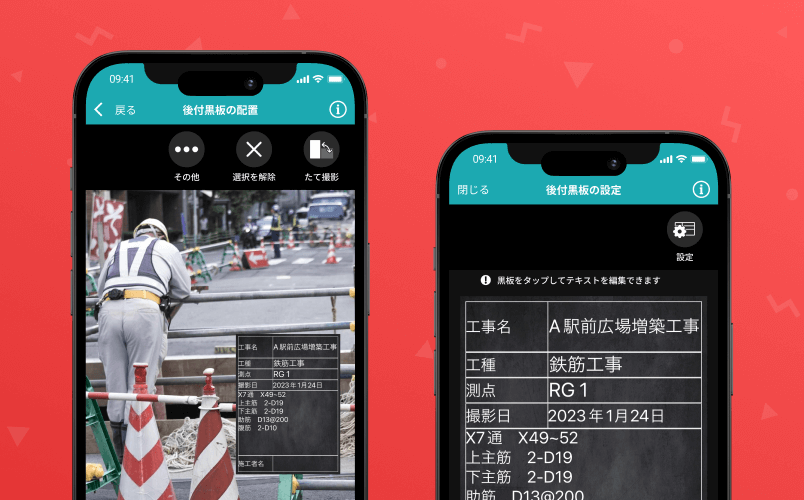 「ミライ工事」は、工事写真台帳を作成するための電子黒板付きアプリです。